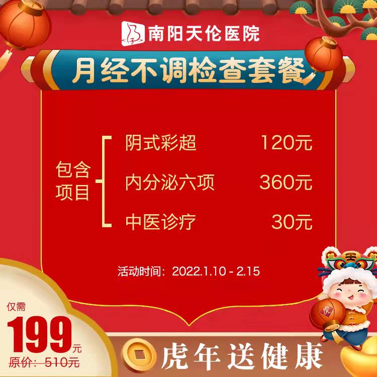 月经不调检查套餐199元(原价510元):阴式彩超、内分泌六项、中医诊疗