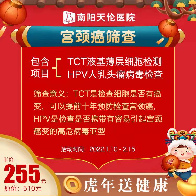 宫颈癌筛查套餐255元(原价510元):tct液基薄层细胞检测、HPV人乳头瘤病毒检测