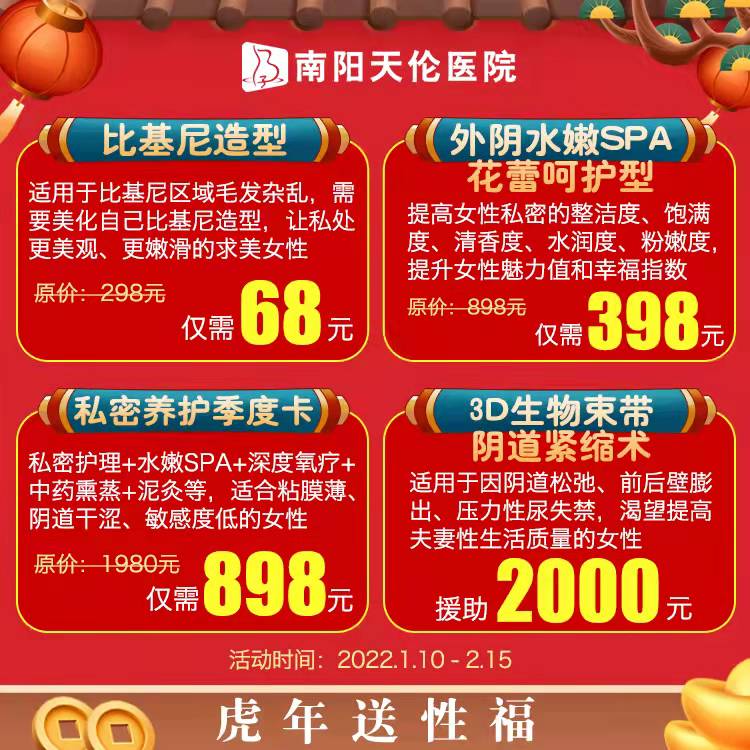 外阴水嫩SPA(花蕾呵护型)398元(原价898元):提高女性私密的整洁度、饱满度、清香度、水润度、粉嫩度,提升女性魅力值和幸福指数。
